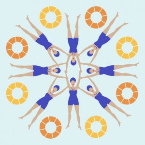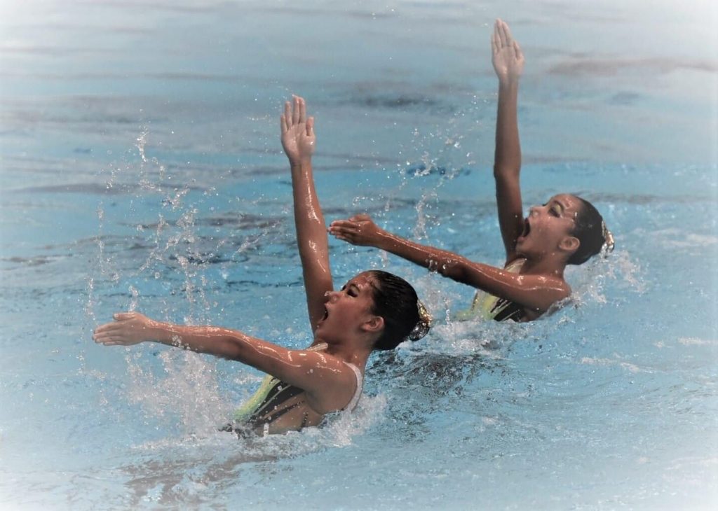 Artistic Swimming was once referred to as ‘water ballet.’ This is because the routines are simply a sequence of athletic movements choreographed to a piece of music. It is similar to staged ballet, except that it is performed in water. Although it is art, beauty, and dance choreographed to music, don’t be deceived by the glitzy performance and lipsticked smiles on the athletes’ faces. Below the surface, top-conditioned competitors perform remarkable feats of strength and flexibility. In fact, even while displaying their choreographed acrobatics with rhythm and flair, artistic swimmers spend much time underwater, performing some routines on a single breath.